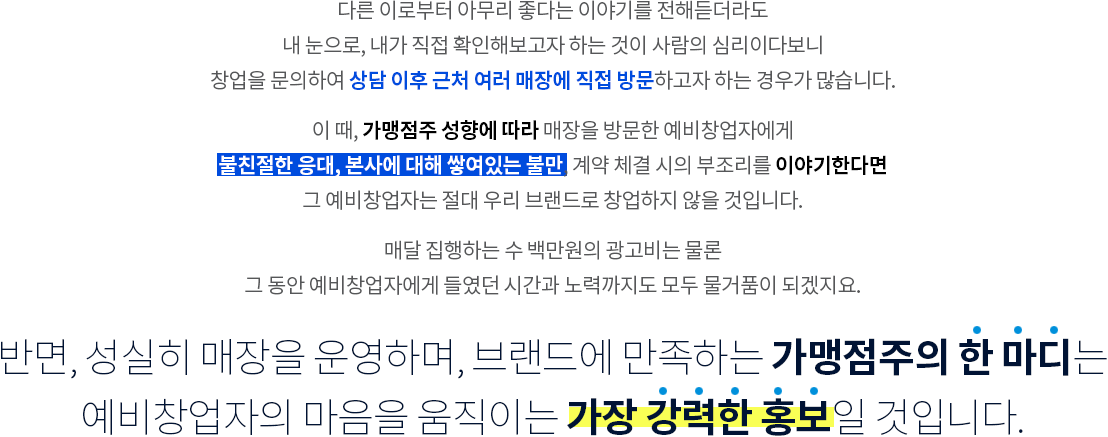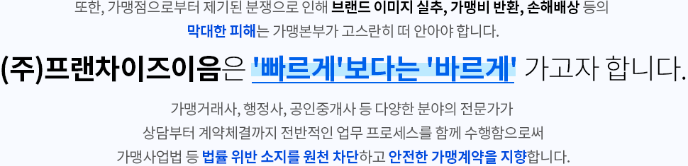 정직한 대행사로, 든든한 동반자로 가맹본부와 함께하겠습니다.